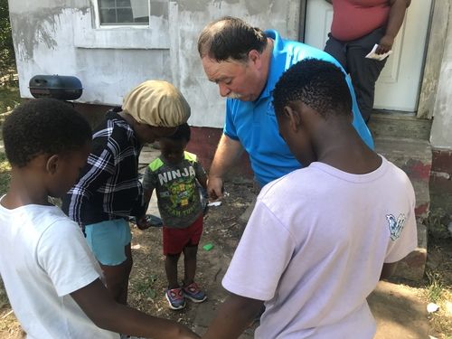 Today we distribute about 80 sacks of groceries a week through a variety of channels. We still go knocking on doors as one way but we also have started “Church on the Street” and “Sack Service”.